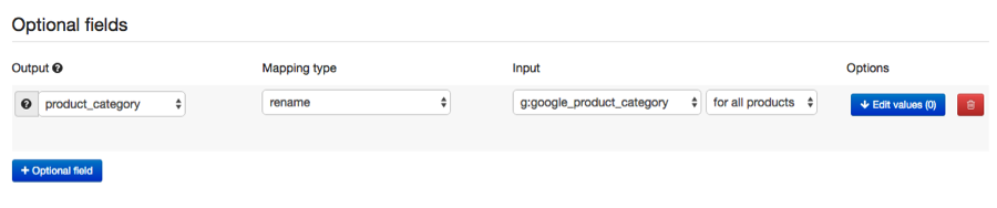 É fundamental categorizar os seus itens corretamente para aumentar a visibilidade deles. Se o seu próprio feed já está ajustado para as categorias do Google, basta conectar o seu campo input g:google_product_category ao campo de output opcional product_category.