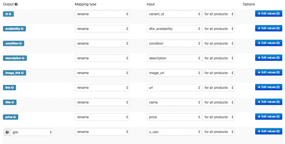 Importante: todas as suas colunas devem estar em inglês, mesmo que o restante do seu feed esteja em outro idioma.