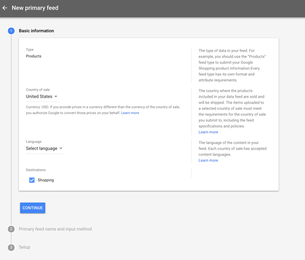 Se você não tem certeza do que sejam elas, informe-se sobre as especificações de produto do Google, as políticas de compras e confira os requisitos de moeda/língua.