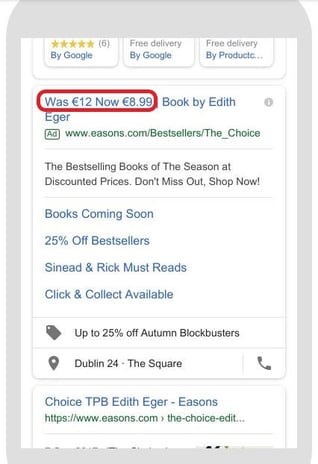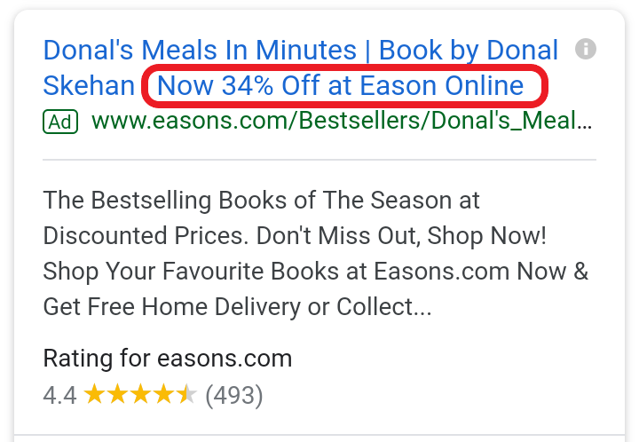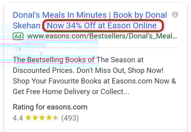 Existem duas maneiras de destacar um desconto em um anúncio de texto: mostrando uma queda de preço com "de X / por Y" ou mostrando a porcentagem de desconto.