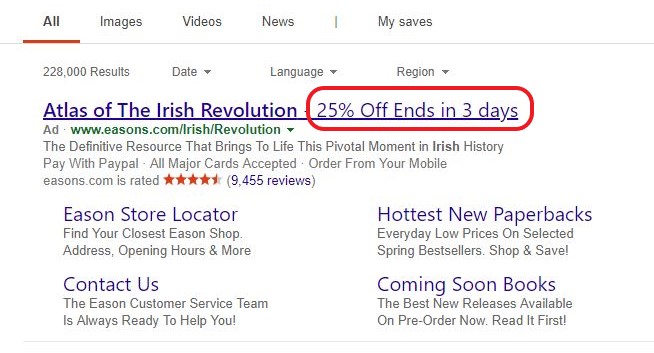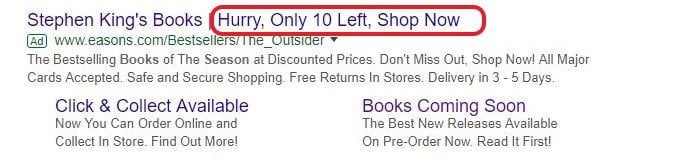 Outra maneira muito boa de criar um senso de urgência em clientes em potencial é mostrar uma contagem regressiva em anúncios de texto.