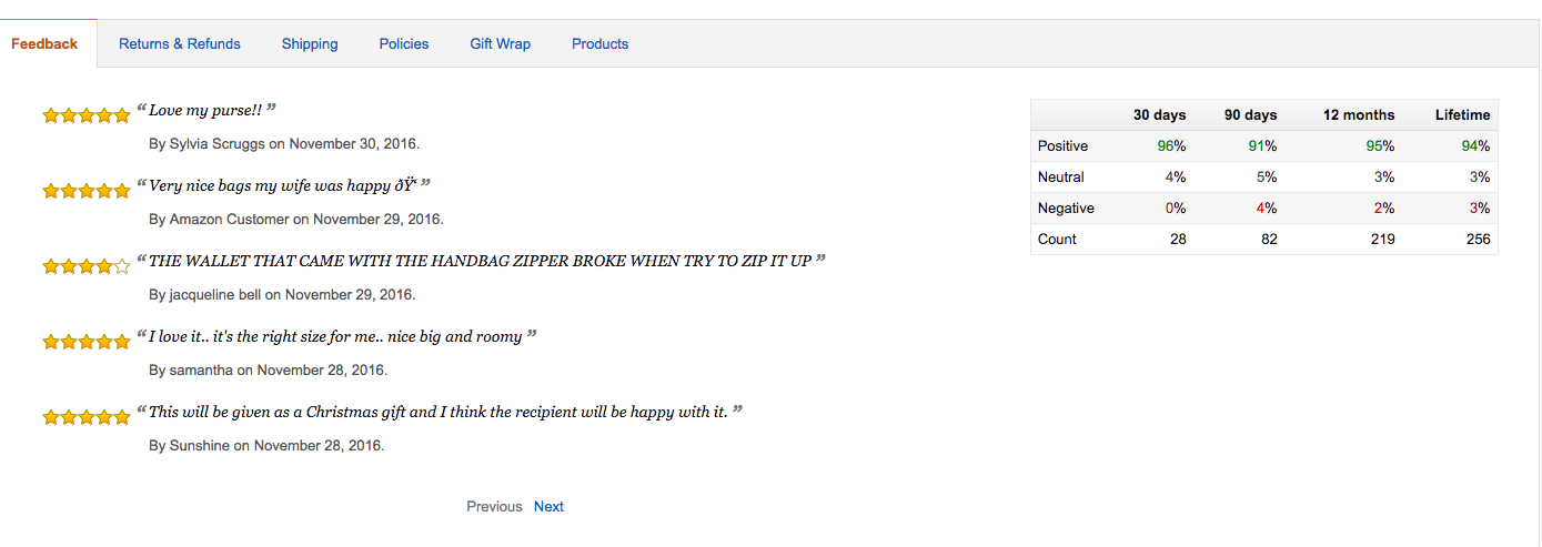 Pontuação de feedback - uma boa pontuação de feedback, especialmente nos últimos 30 dias, ajuda a ganhar a Buy Box.