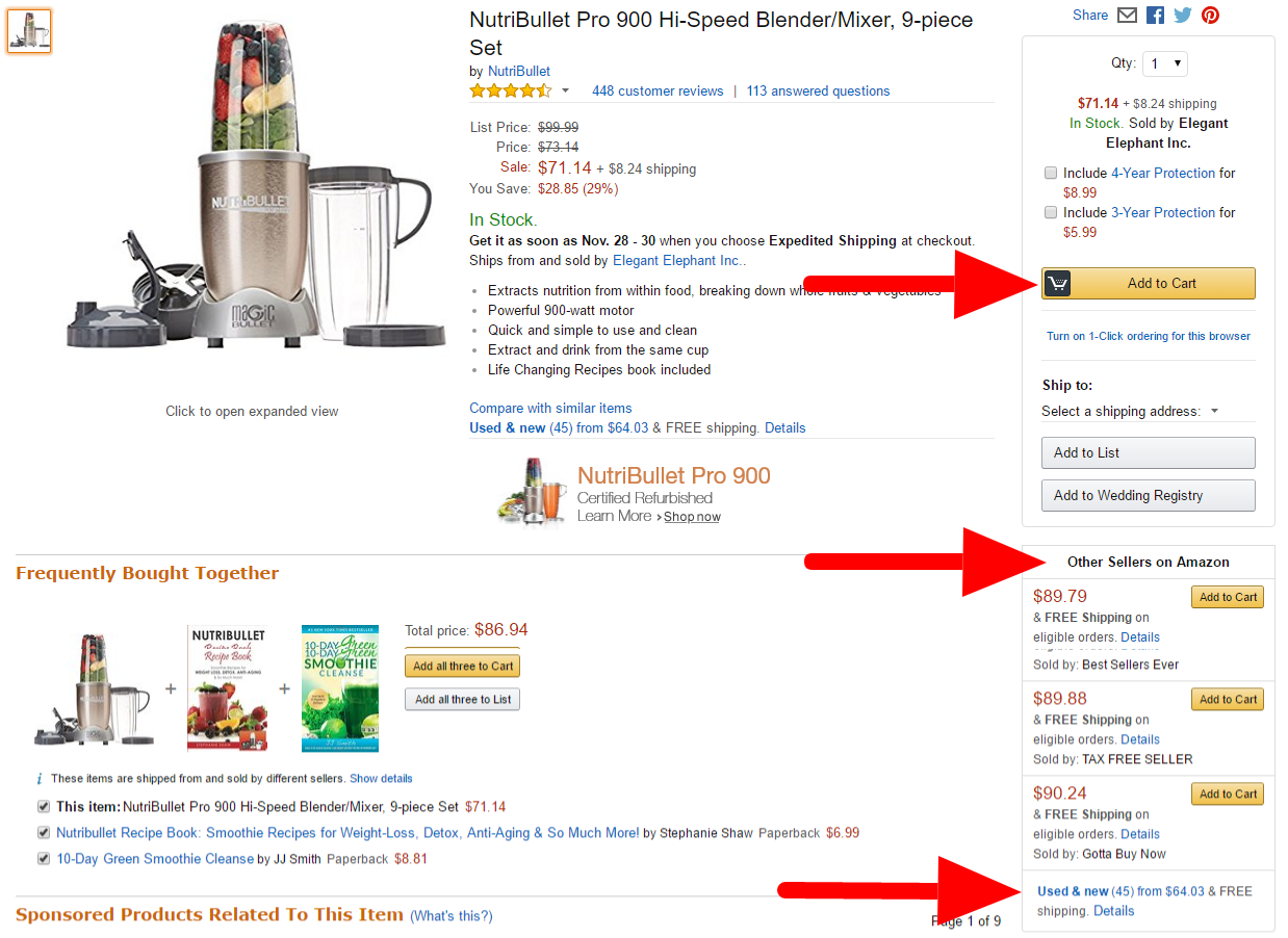 A Buy Box é de importância crítica porque fica diretamente abaixo do preço e da imagem do produto. Para ver qualquer outra coisa, o cliente tem de descer na página.