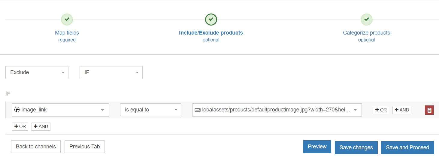 Você pode usar a função exclude no DataFeedWatch para excluir produtos com imagens genéricas. Isso ajuda a manter o seu feed limpo e sem reprovações, pronto para a Black Friday!