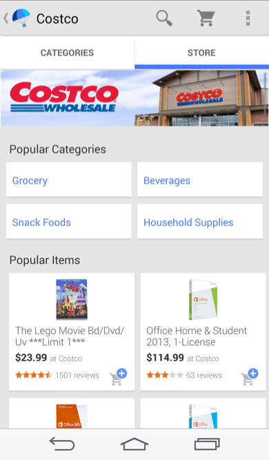 - Em primeiro lugar, a experiência no Google Express consiste mais em compras por vendedor do que por item. Isso restringe um pouco as possibilidades. No Google Express, você precisa comprar seus gêneros alimentícios da Whole Foods, mas se você também quiser comprar uma guitarra Amplifier do Centro de Guitarras, isso criaria um pedido diferente, já que você está usando vendedores diferentes. Na Amazon, você pode geralmente passar itens diferentes de vendedores diferentes no mesmo pedido. Para que você tenha uma ideia, a imagem abaixo mostra como uma loja é tipicamente mostrada no Google Express. Como você pode ver, você está numa loja específica.