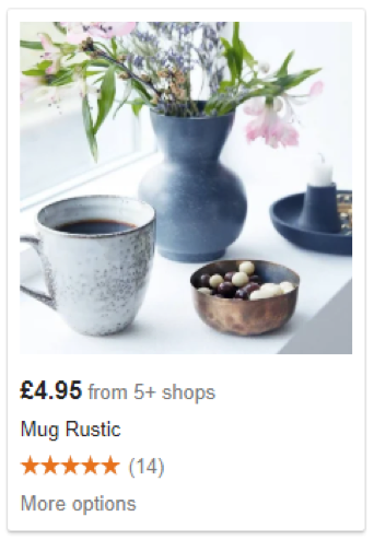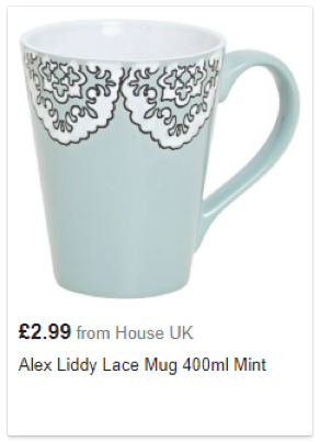 Na imagem exemplo, o produto sendo vendido é uma caneca. No entanto, os acessórios ao redor tornam mais difícil de salientar o produto.