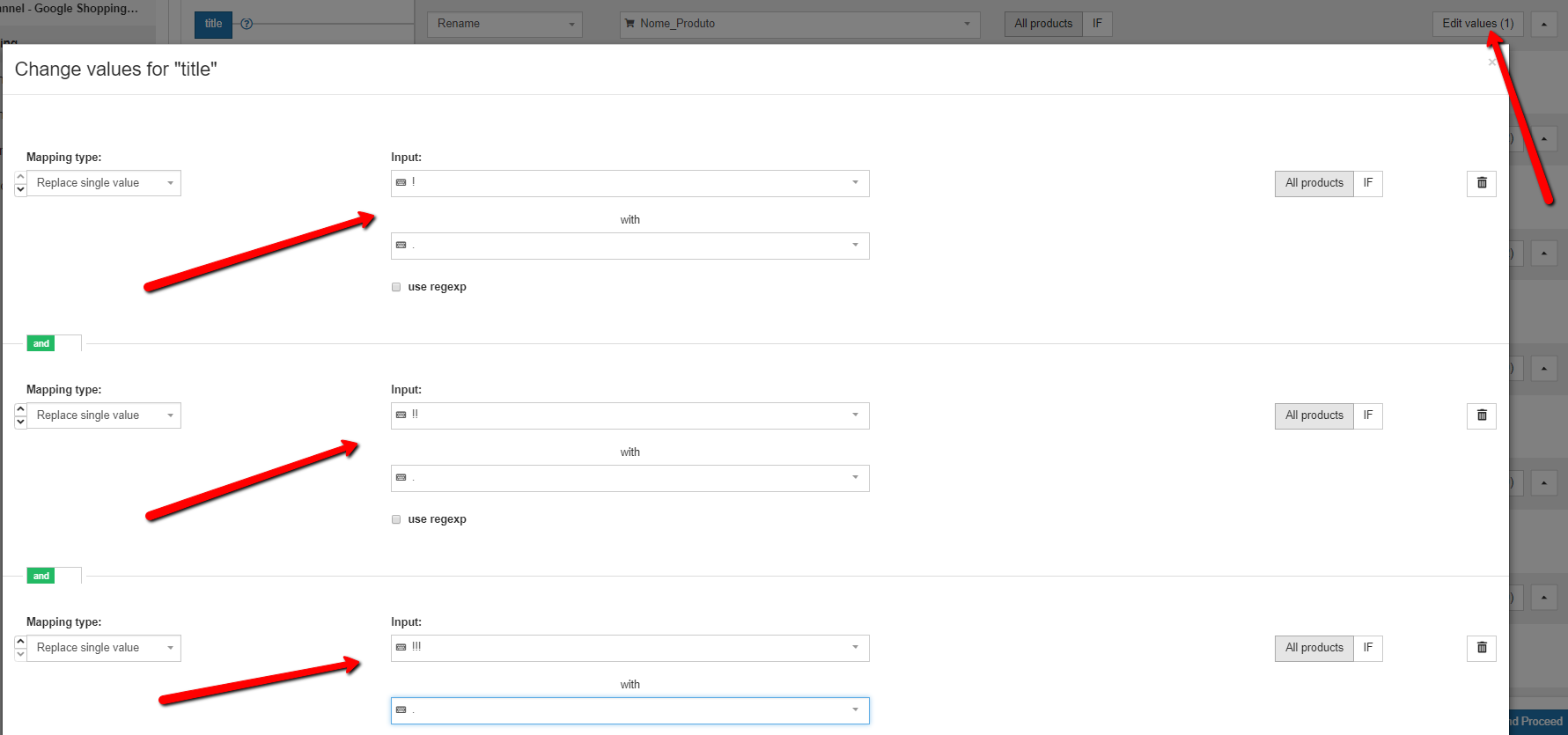 O Google tem regras muito estritas quanto ao uso de maiúsculas e pontos de exclamação. Se você adicionar demasiadas letras maiúsculas e pontos de exclamação a um título, seu produto não será aprovado.