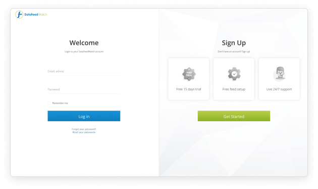Iniciar a sessão na DataFeedWatch