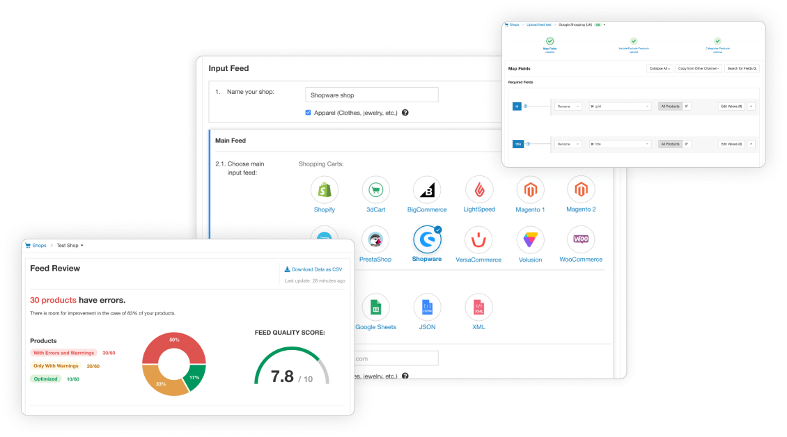 Crie, mapeie e otimize os seus feeds com facilidade e, caso alguma vez se veja diante dum dilema, a nossa equipa de especialistas na otimização de feeds terá todo o prazer em ajudá-lo!